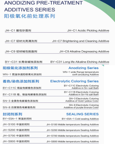 Anodizing pre-treatment additives series,Electrolytic Coloring Series,Sealing series 阳极氧化前处理添加剂,着色添加剂,封闭剂